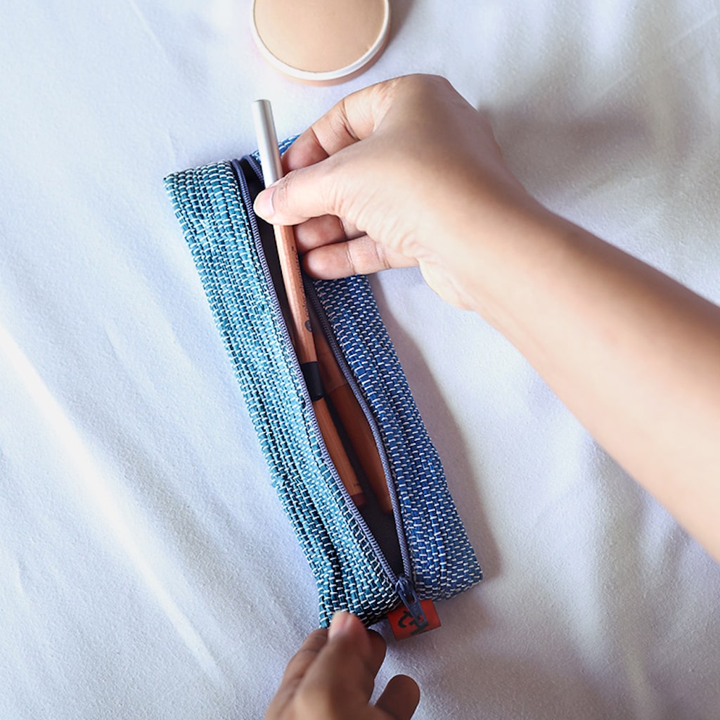 バッグの中で迷子になりがちなものを収納できるジッパー付きポーチ。 例えば... 旅先でスケッチをしたいから好きな色鉛筆を持ち歩いたり、時間があれば編み物をしたいから色んな針を持ち歩いたり。そんな収納にピッタリなサイズ感です。